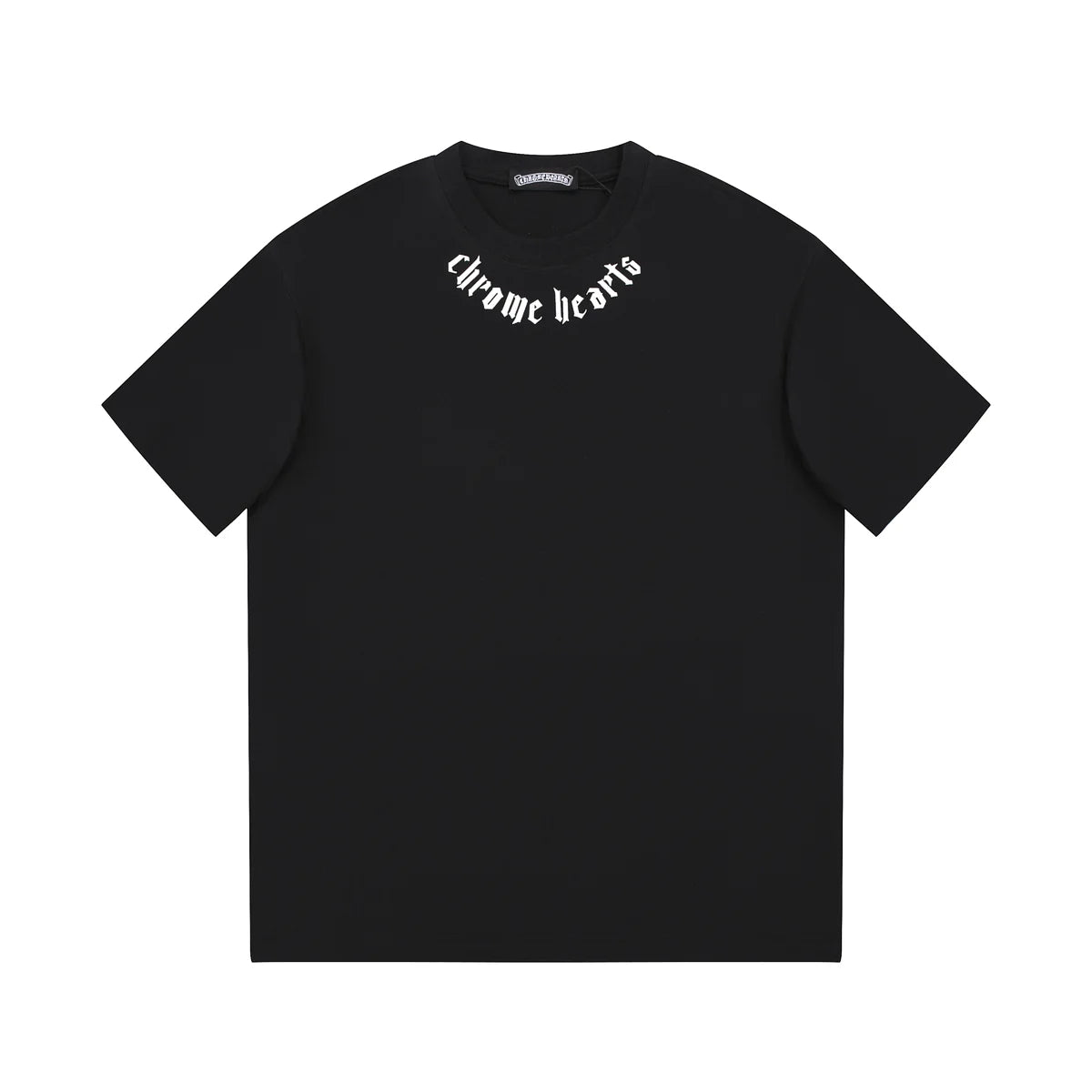 SUBTLE LUXURY WITH A GOTHIC EDGE. This Chrome Hearts Logo Collar T-Shirt is a refined take on streetwear, featuring the brand’s signature gothic logo embroidered around the collar for a sleek yet bold statement. Crafted with premium materials and expert craftsmanship, this tee is a staple for those who appreciate understated luxury with iconic detailing.