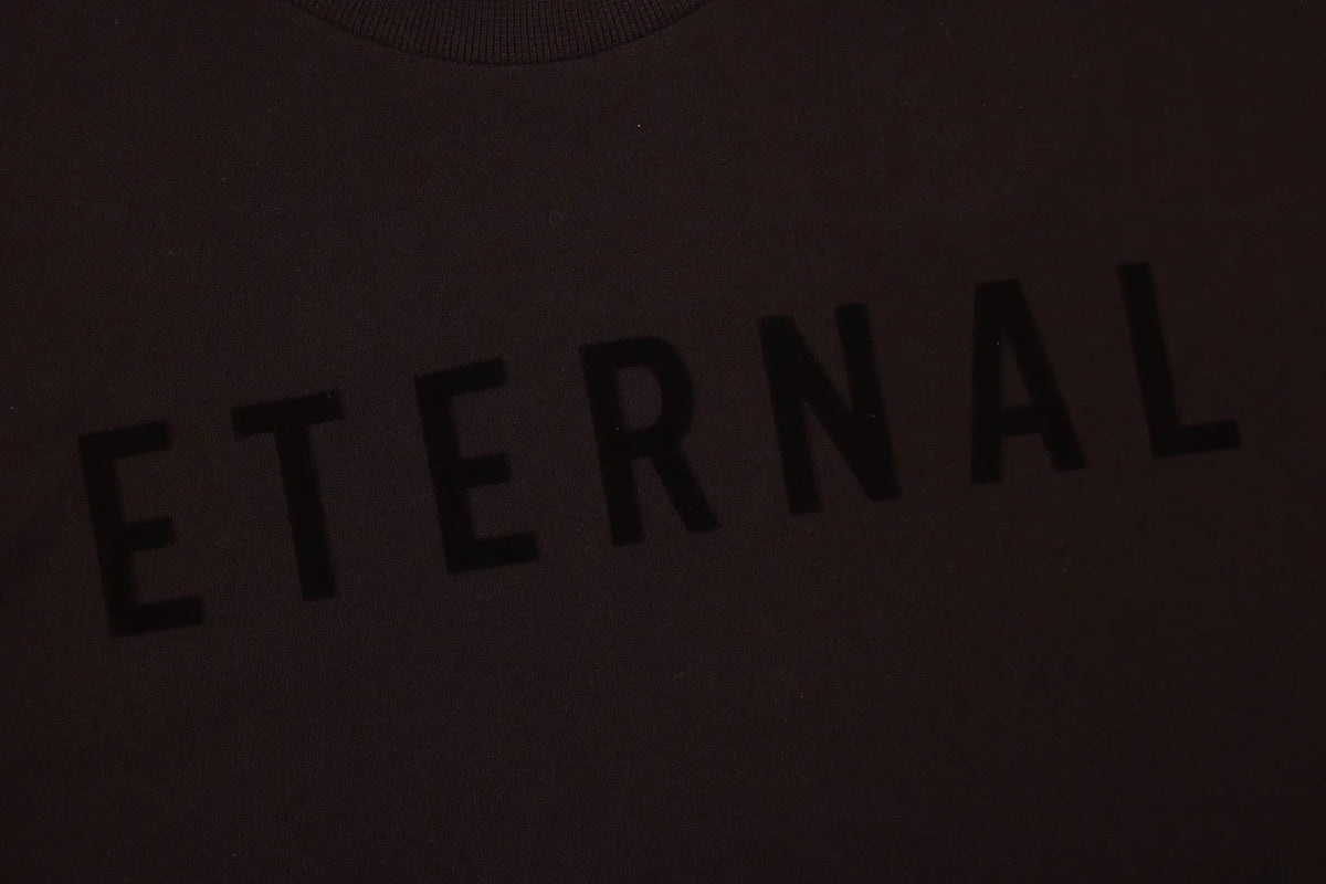 Designed in a sleek black colorway, it features the subtle yet iconic "Eternal" branding, embodying Fear of God’s signature blend of simplicity and high-end craftsmanship. The ribbed crewneck, dropped shoulders, and relaxed silhouette enhance its laid-back yet elevated aesthetic, making it perfect for pairing with jeans, cargo pants, or layering under an oversized jacket for a refined streetwear look.