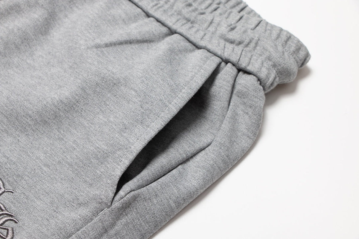 LUXURY STREETWEAR WITH A GOTHIC TOUCH. The Chrome Hearts Horseshoe Logo Shorts in Grey blend premium craftsmanship, bold branding, and effortless comfort, making them a must-have for any urban wardrobe. Featuring the signature Chrome Hearts horseshoe logo, these shorts bring high-end street fashion with an edgy, rebellious spirit.