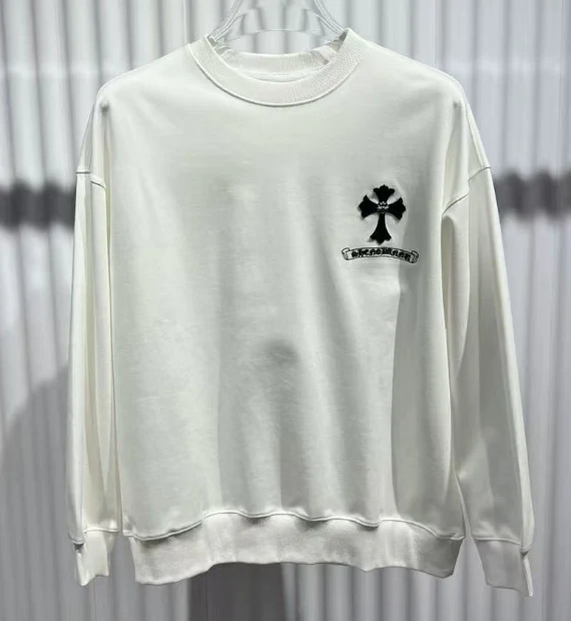 ICONIC STREETWEAR WITH A STRIKING CONTRAST. The Chrome Hearts Black Cross Sweatshirt in White blends luxury craftsmanship with bold gothic aesthetics, featuring signature black cross motifs that create a powerful contrast against the crisp white fabric. Designed for those who embrace high-end street fashion with a rebellious attitude, this sweatshirt is a must-have statement piece.