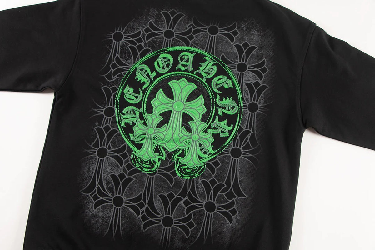 ✔ Color: Deep black with contrasting green Chrome Hearts graphics for a bold, standout look