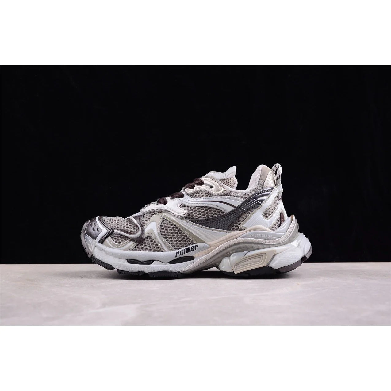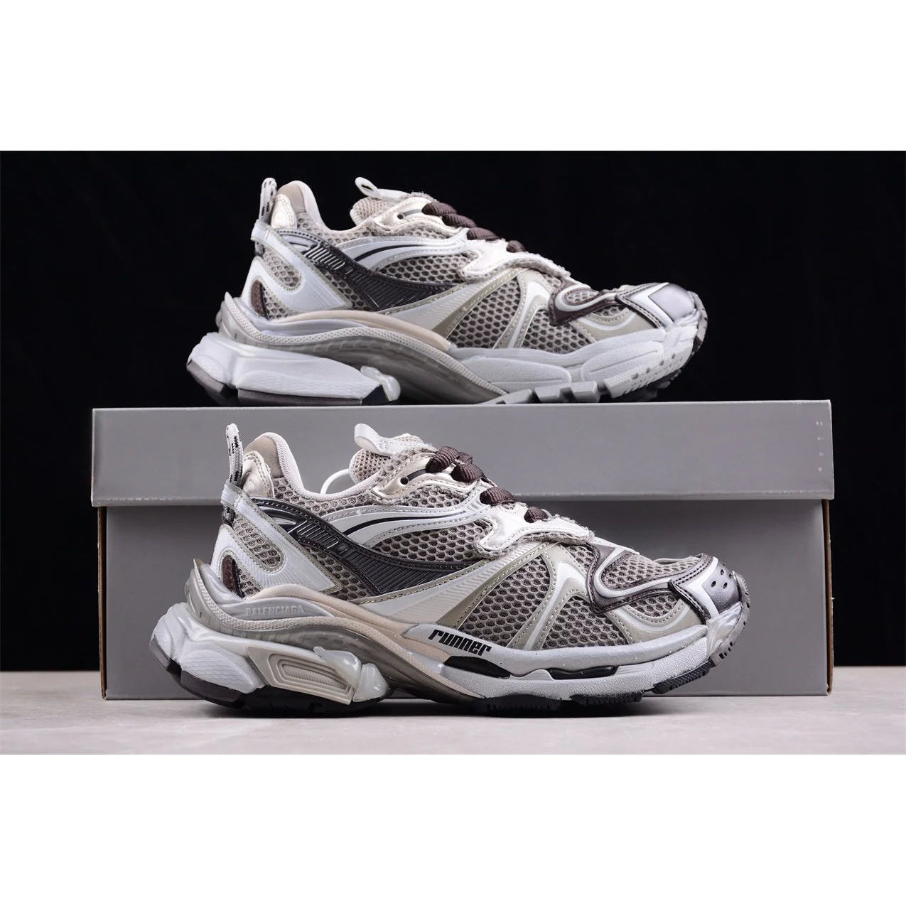 Introducing the BALENCIAGA Runner in Taupe Mix, a sophisticated fusion of style and performance. These sneakers feature a refined taupe palette, blending various shades for a versatile and contemporary look. Crafted from premium materials including mesh, nylon, and leather, they ensure durability and breathability. The complex layered design is paired with a cushioned sole for exceptional comfort and support. Signature Balenciaga branding on the tongue and side adds a touch of luxury. Ideal for those who appreciate understated elegance, the BALENCIAGA Runner in Taupe Mix seamlessly combines innovation with high fashion for a standout footwear choice.
