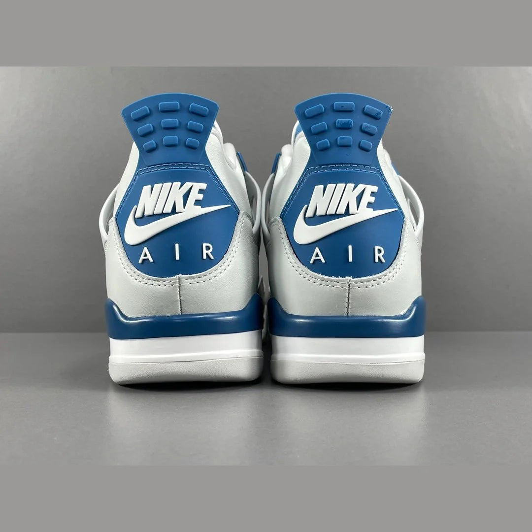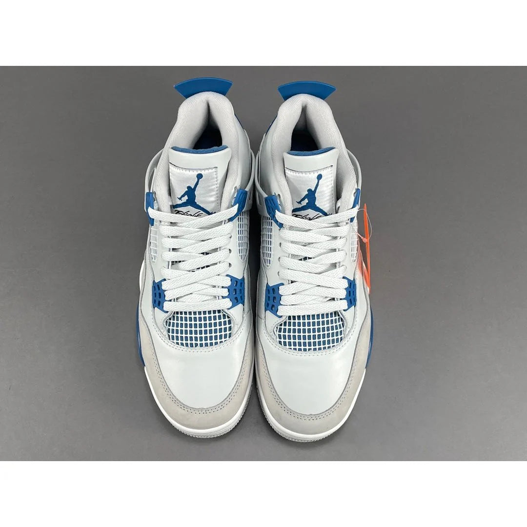 Experience the iconic JORDAN 4 x MILITARY BLUE, a fusion of timeless style and modern performance. This classic sneaker features a durable leather upper with mesh panels for breathability and support. The signature "wings" provide a custom fit, while the visible Air-Sole unit in the heel offers lightweight cushioning. The Military Blue accents add a bold pop of color, enhancing the shoe's striking design. Perfect for both the court and the streets, the JORDAN 4 x MILITARY BLUE combines heritage aesthetics with contemporary comfort, making it a must-have for any sneaker enthusiast. Elevate your game and style with this legendary release.
