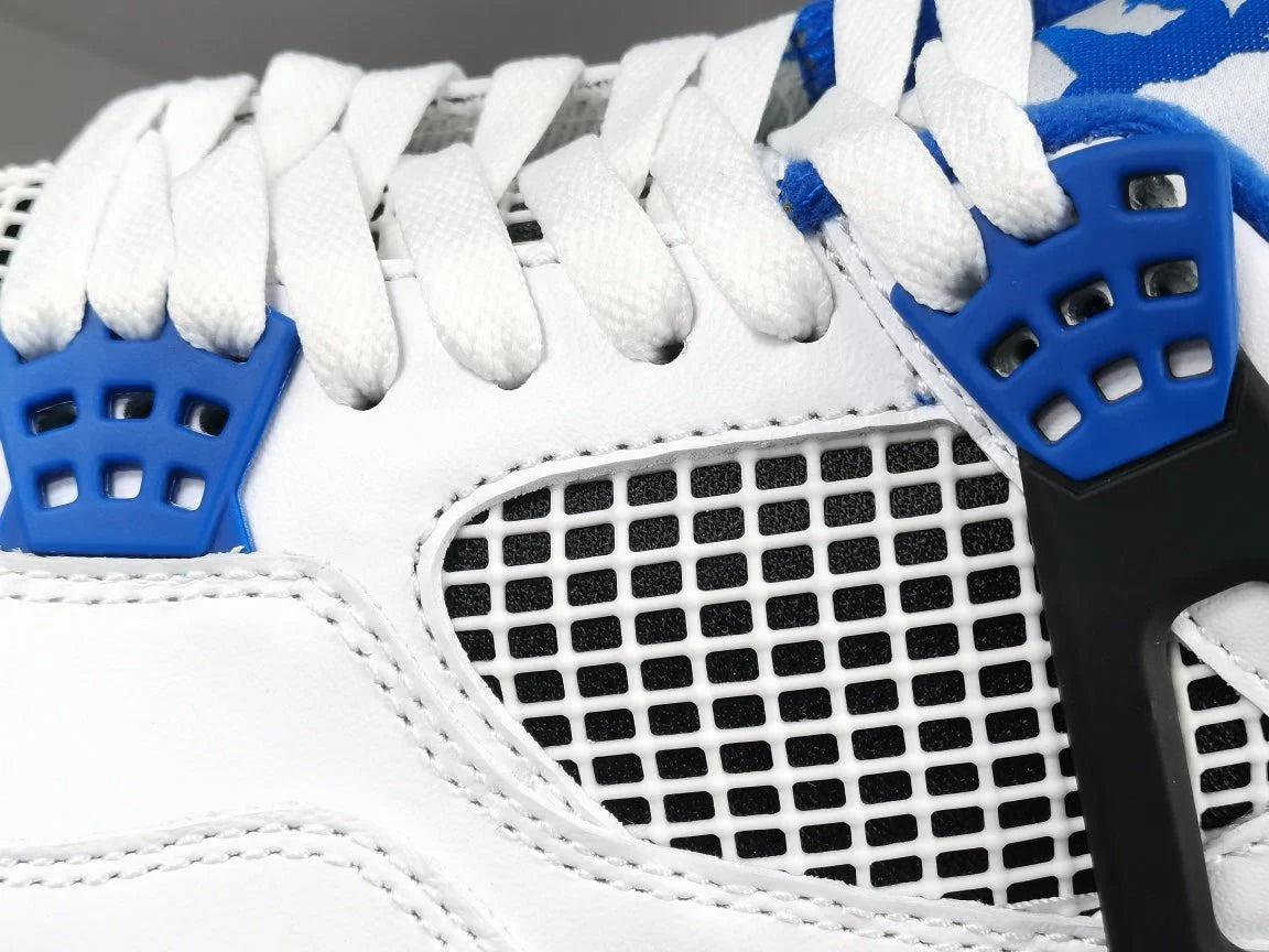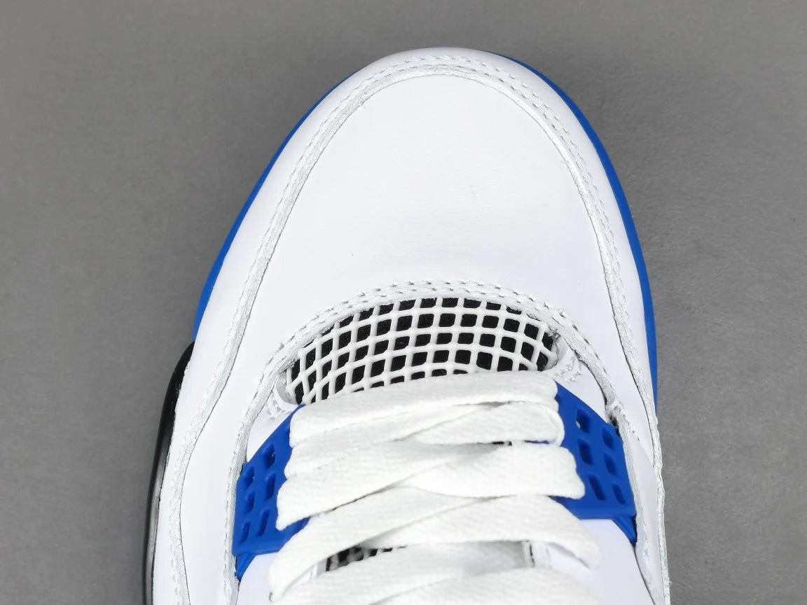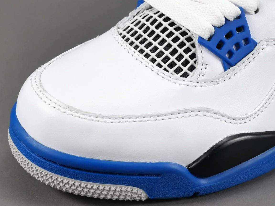 The Jordan 4 Motorsport features a sleek, white leather upper that exudes elegance and sophistication. The clean lines and minimalist design create a timeless aesthetic that seamlessly blends with any outfit. The contrasting black accents, including the iconic Jumpman logo on the heel and tongue, add a touch of boldness and visual interest.