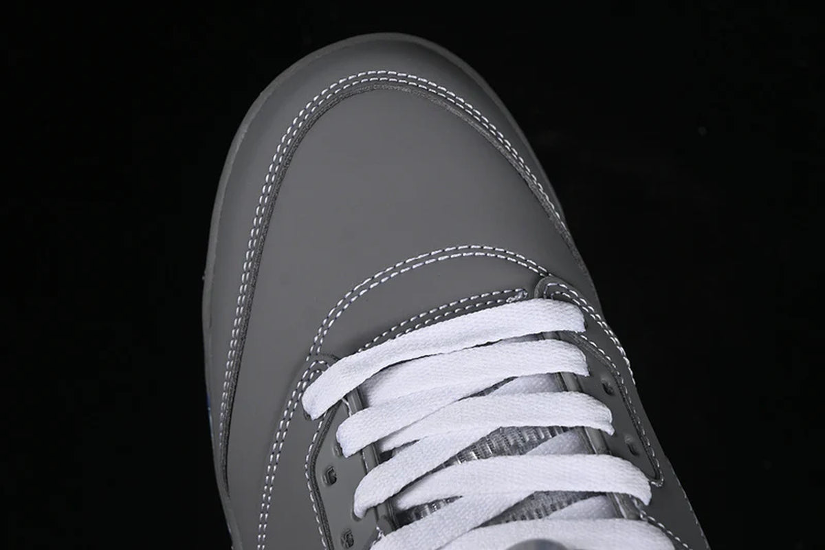 The JORDAN 5 x WOLF GREY - REPLICA is a sleek and timeless addition to any sneaker collection, offering a perfect blend of sophistication and bold design. Featuring a premium grey suede upper with tonal detailing and reflective accents, this iconic silhouette delivers understated elegance with a modern edge.