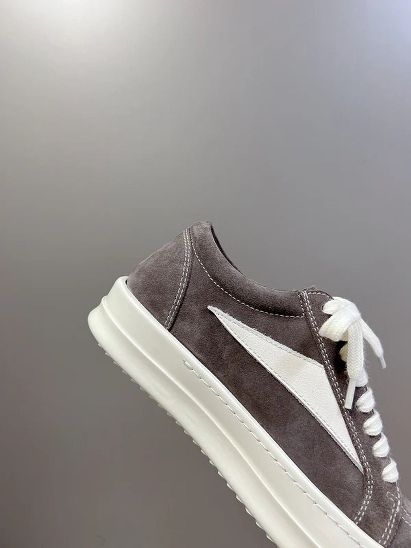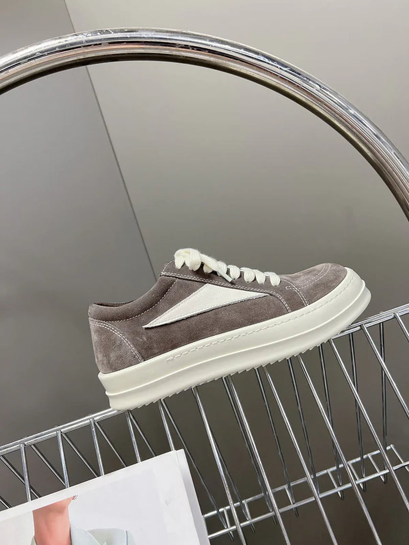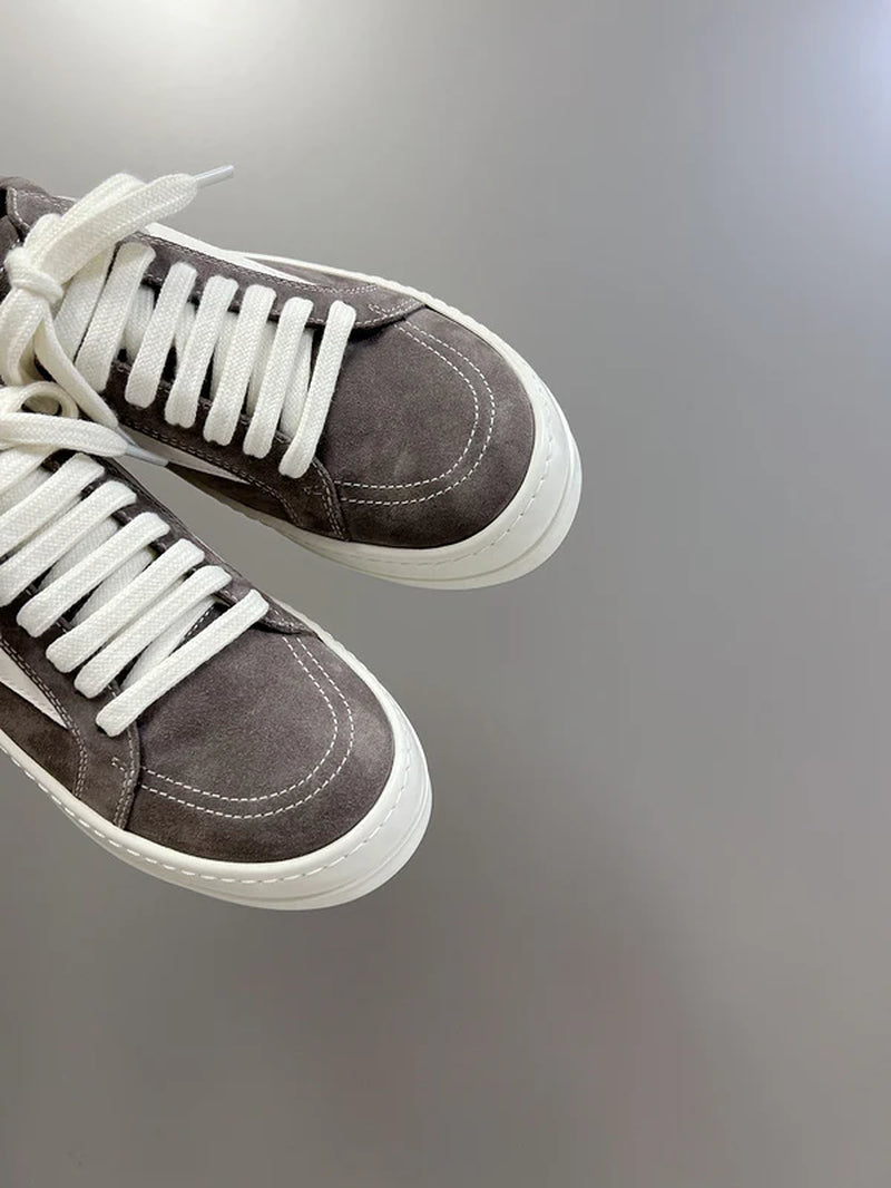 Introducing the Rick Owens Low-Top Sneakers in sophisticated grey suede, a perfect blend of luxury and everyday practicality. These sneakers epitomize the avant-garde style Rick Owens is renowned for, making them a must-have addition to any modern wardrobe.